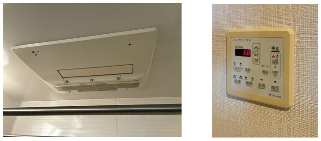 24時間換気機能・浴室乾燥・衣類乾燥(エコ・自動・タイマー)・暖房・涼風・換気機能を搭載しています。