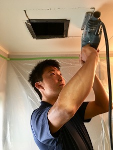 既存の換気扇と比較して重量も増えますので、天井部分が垂れ下がらないよう、木材で補強します。