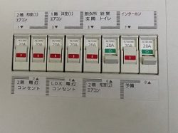 新たに取り付けた分電盤にネームシールを貼る事で安全ブレーカーがどこの回路かすぐに分かります。