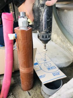 アンカーを打つ穴をドリルで真っ直ぐ開けていきます。