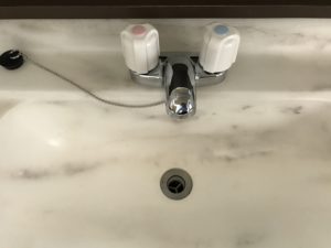 長年ご使用された洗面化粧台の2ハンドル水栓を新しく交換