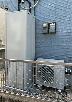 エコキュートを設置するには、そこそこスペースが必要となりますが、Y様邸では角型のエコキュートを設置するスペースがありませんでしたので、薄型のエコキュートをご提案させていただきました。