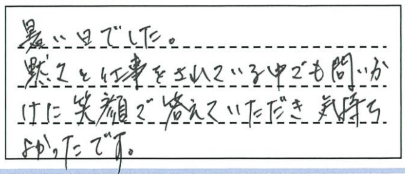 暑い日でした。黙々と作業されている中でも問いかけに笑顔で答えていただき気持ちよかったです。