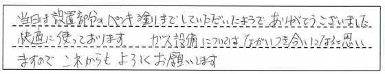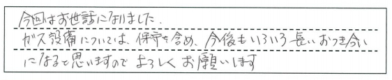 ガス設備については保守を含め今後もいろいろ長いおつき合いになると思いますのでよろしくお願いします。