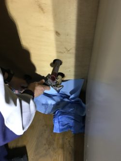 既設の食洗機を取り外すため、給水、排水ホースを切り離していきます。
