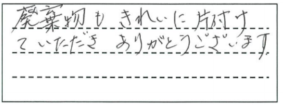 ご主人様より「手際がよかったし、こんなに早く終わってくれたんですね。ありがとう」と言って頂けました。アフターサービスもしっかりとさせて頂きます!!