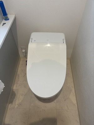 お取付けしたトイレはTOTOのGGシリーズ(CES9415M)、ウォシュレット一体形便器でタンク式のトイレとなります。一見タンクレストイレのように見えますが、後ろにタンクがあります。