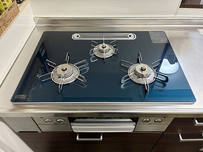 ガラストップ天板が明るい色になりましたので、キッチン全体も明るい雰囲気になりました。