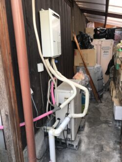 新しい給湯器が入荷するまでの間、仮設のガス給湯器を設置しました。