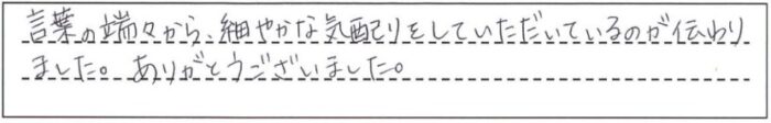 言葉の端々から細やかな気配りをして頂いているのが伝わりました。ありがとうございました。