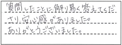 質問したことに解りやすく答えて下さり安心感がありました。ありがとうございました。