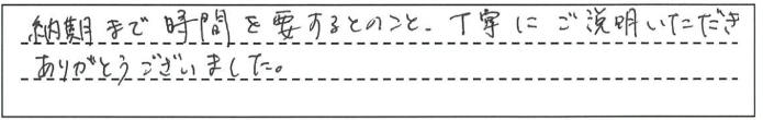 納期まで時間を要するとのこと、丁寧にご説明いただきありがとうございました