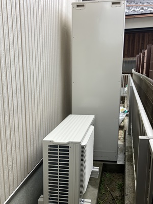 滋賀県大津市にて電気温水器⇒エコキュートへの交換と同時に2階のエアコンも交換させて頂きました。
