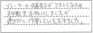 ブレーカーの位置表示が適当な為、お手数をお掛けしましたが、適切に作業して頂きました。