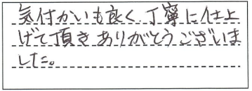 気づかいも良く、丁寧に仕上げて頂きありがとうございました。
