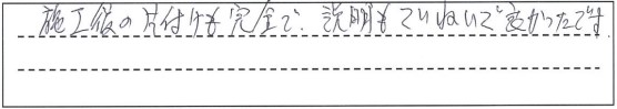 施工後の片付けも完全で、説明も丁寧でよかったです。