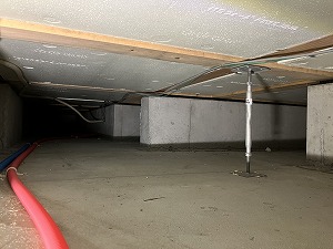 床下にもぐり、排水管・湯配管を分岐して立ち上げます。