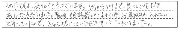 すぐに現地調査をさせていただくと、少しの手直しでお湯は通常通り使える状態に。大変喜んでいただきましたが、年数も経っている為、交換をされることになりました。