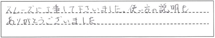 スムーズに工事して下さいました。使い方の説明もありがとうございました。
