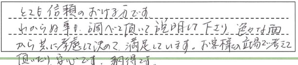 から共に考慮して決めて満足しています。お客様の立場で考えて