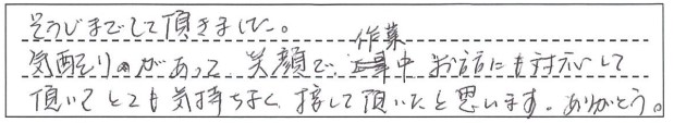 頂いてとても気持ちよく接して頂いたと思います。ありがとう。
