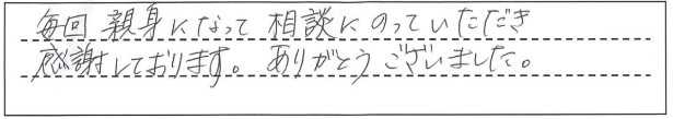 毎回親身になって相談にのっていただき感謝しております。ありがとうございました。