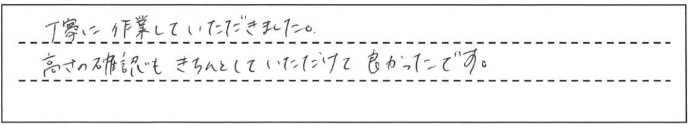 上田さん丁寧に作業して頂きました。高さの確認もきちんとしていただけて良かったです。