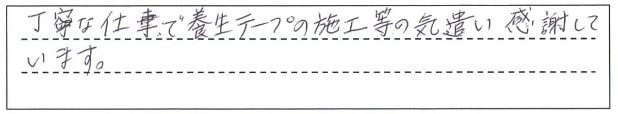 丁寧な仕事で養生テープの施工等の気遣い感謝しています。