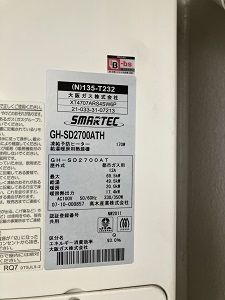交換前 パーパス製 GH-SD2700ATH ((N)135-T232 大阪ガス品番)