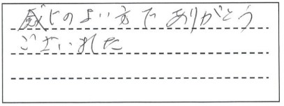 ショールーム(草津店)にお支払いに来店くださった際、「綺麗なショールームですね。飾ってあるもののセンスも良いし、気持ちが良いですね。」とお褒めのことばをちょうだいしとても光栄です。