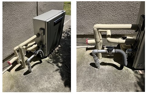 「もう少しもってくれたらなぁ」とお客様。本体設置まで10日ほどありましたが、至急仮設給湯器を設置し、お湯を使っていただけるよう対応させていただきました。