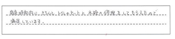 指定時間内にきちんとトイレのセットと水栓の修理をしてもらえたので満足しています。