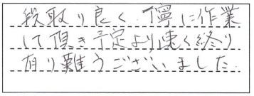 段取り良く丁寧に作業して頂き予定より早く終わり有難うございました。
