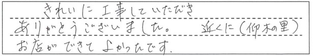 きれいに工事していただきありがとうございました。近くに(仰木の里)お店ができてよかったです。