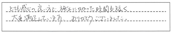 とても感じの良い方で、施工にかかった時間も短く大変満足しています。ありがとうございました。