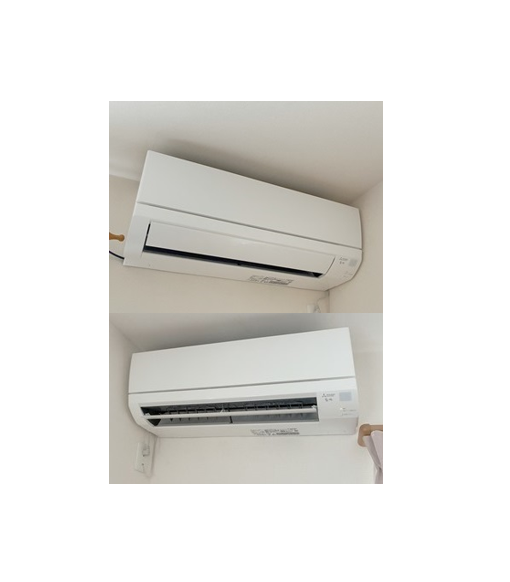 当社のチラシを見てご連絡いただいたお客様、リビングにはダイキン『うるるとさらら』、2階の個室部屋に三菱の『GVシリーズ』への交換をご希望でした。