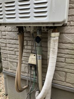 給湯・追焚配管・ガス管は既設利用で繋ぎ変え、配管の保温材は全て巻き直しをしています。