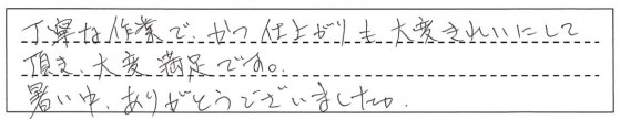 丁寧な作業でかつ仕上がりも大変きれいにして頂き、大変満足です。