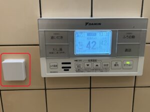 追焚配管と一緒に吸気ホースを一回外に出してから、リモコン横に穴を開けて浴室内に通して取付けをおこないます。