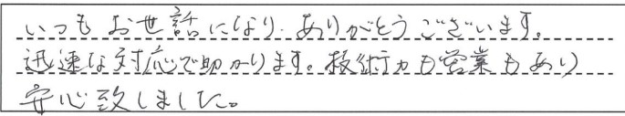迅速な対応で助かります。技術力も営業力もあり安心致しました。