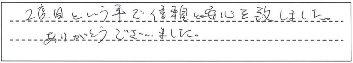 2度目ということで信頼と安心を致しました。ありがとうございました。