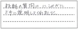 材料の質問ににこやかに上手に説明してくれました。