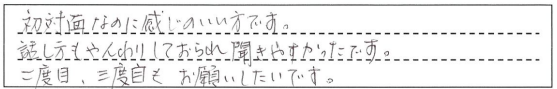 話し方もやんわりしておられ聞きやすかったです。二度目、三度目もお願いしたいです。