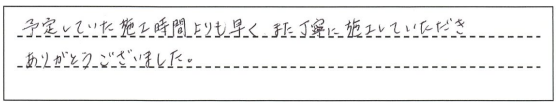 予定していた施工時間よりも早く、また丁寧に施工していただきありがとうございました。