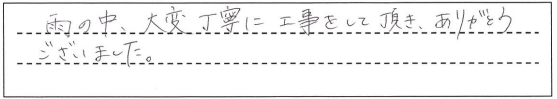 雨の中、大変丁寧に工事をして頂きありがとうございました。