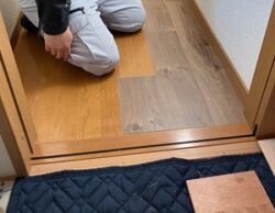 本格的に床を貼り替えると費用も工事も大がかりになるため”ウスイータ”という薄い建材をご提案。