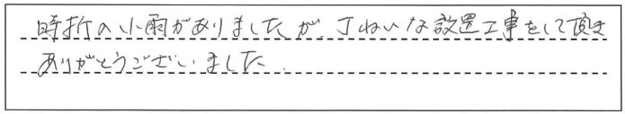 時折の小雨がありましたがていねいな設置工事をして頂きありがとうございました。