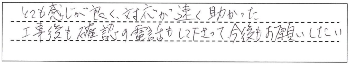 工事後も確認の電話もして下さって今後もお願いしたい。