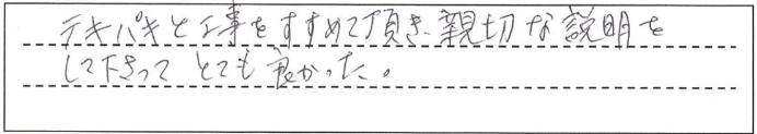テキパキと工事をすすめて頂き親切な説明をして下さってとても良かった。