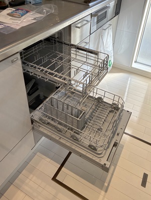 新しい食洗機をみて、「ハイテクですね!!今までのものがすごくアナログに感じます」と驚きのご様子。